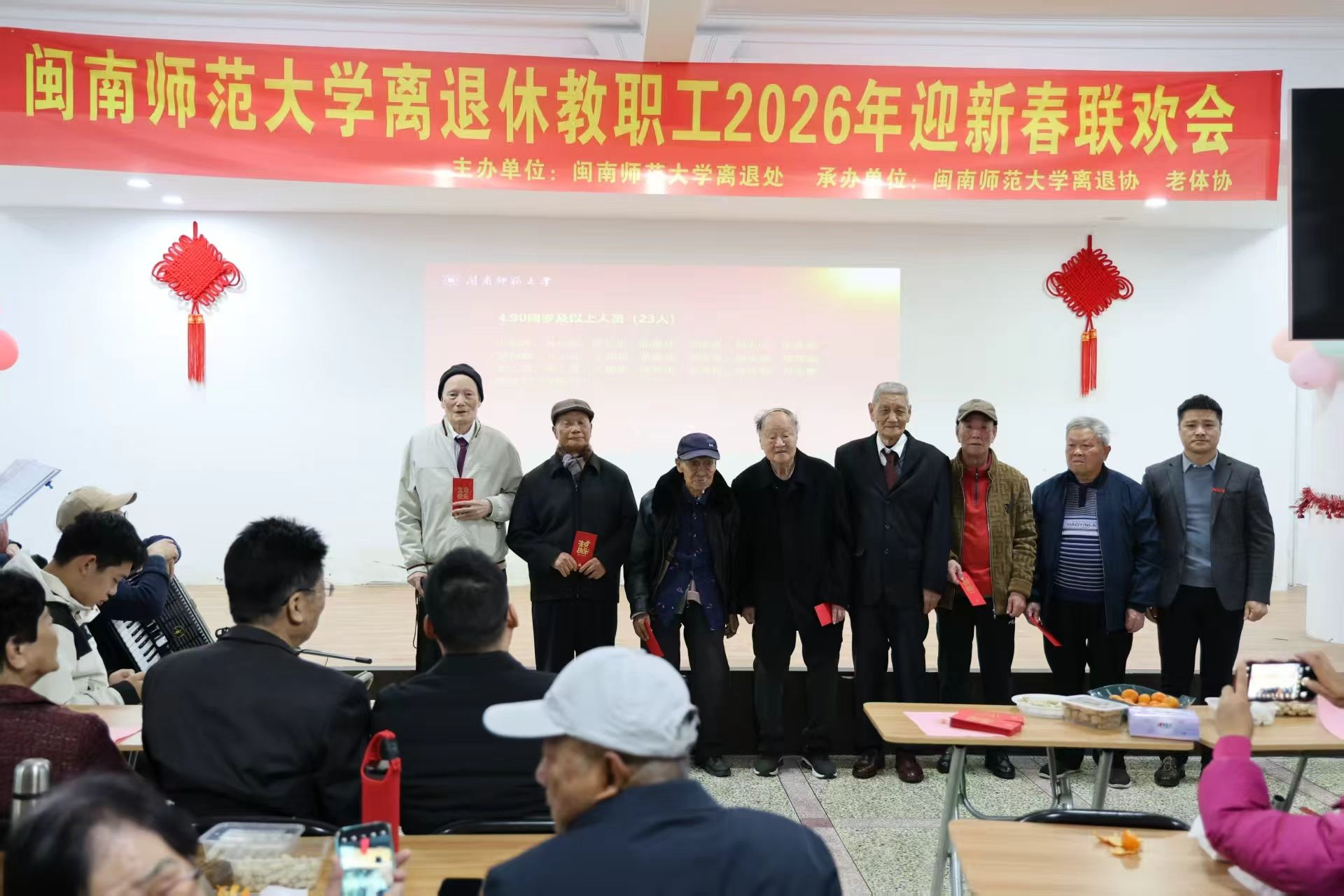联欢会上还为44位今年整70岁、整80岁、满90周岁及以上的老寿星代表同堂庆生。